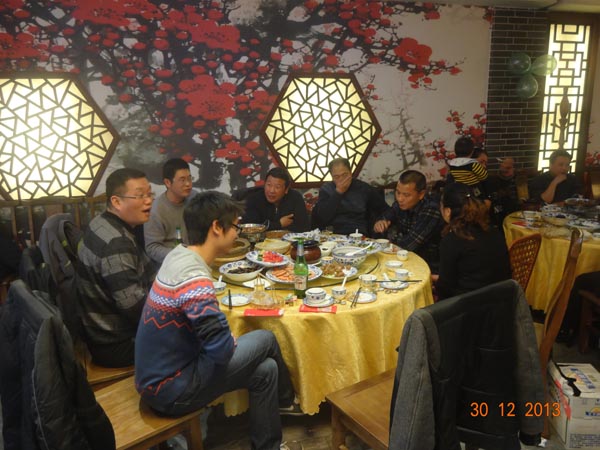 2013-12-30中午,公司全體人員進(jìn)行年終尾牙聚餐。首先周總代表全體股東發(fā)表發(fā)言,吃飯期間穿插摸獎,領(lǐng)導(dǎo)敬酒將氣氛推向高潮。總之這次活動取得圓滿成功,大家都吃得很開心,玩得也很盡興。通過本次公司聚餐,同事之間有了一個更好的交流機會,不僅加深了同事之間的感情,還增強了整公司的凝聚力。